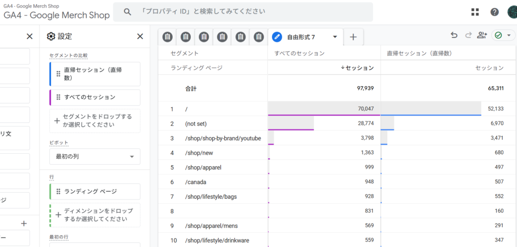 STEP3:指標「セッション」とかけあわせたレポートをつくる